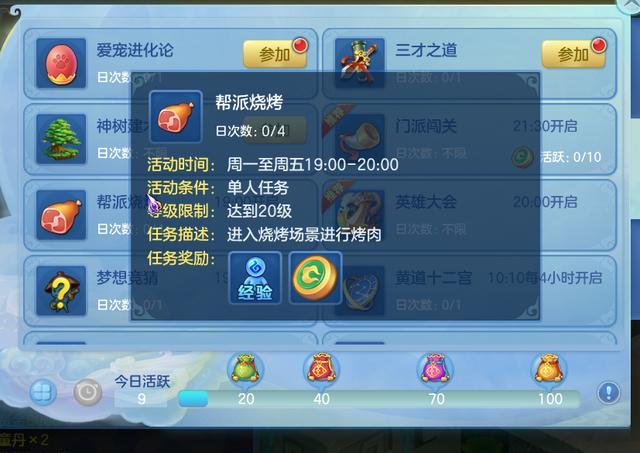 除此之外,《梦想世界3D》中还有许多限时活动也可获得梦想币。例如黄道十二宫、梦想竞猜、门派闯关、英雄大会等等,甚至参加帮派烤肉都可以得到梦想币。不过需要注意的是,一些限时活动的任务会有一定难度,需要玩家们组队进行。