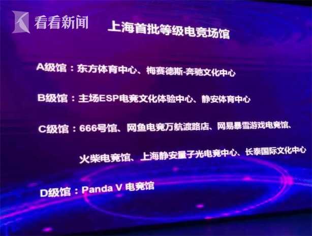 此次评审通过的A类场馆有:梅赛德斯-奔驰文化中心、东方体育中心;B类场馆有:ESP电竞文化体验中心、静安体育中心;C类场馆有:666号馆、网鱼网咖(曹家渡店)、火柴电竞馆、网易暴雪游戏电竞馆、上海静安量子光电竞中心、长泰国际文化中心;D类场馆为:Panda V。