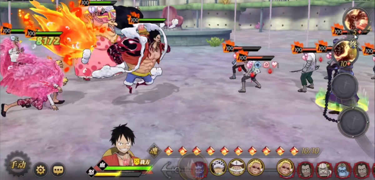 与启航完全相反,燃烧意志是一款3D游戏,而且建模非常出色,可以说是国内航海王手游里画质建模最优秀的作品了,而游戏本身是回合制的玩法,所以对海米的布阵策略还是有一定要求的,剧情也不算拉下太多,一进来到了佐乌岛,就比动漫慢了一个篇章罢了。