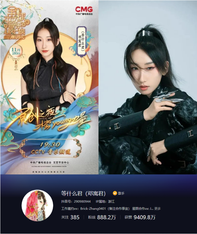 演唱《我是大东家》主题曲的邓寓君,曾连续两年获得TMEA年度国风音乐人奖项,全网粉丝破千万,歌曲全网播放过百亿,更迄今十次登上央视,是酷狗音乐95后在榜歌曲最高且最多的华语女歌手之一。